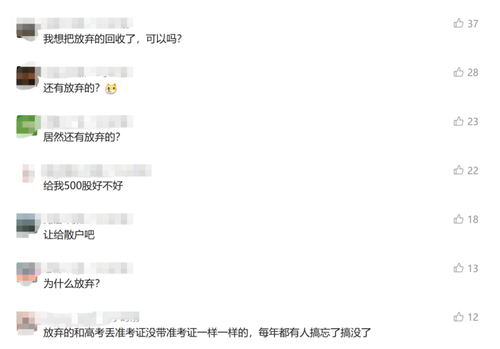 对于超2.9万股被放弃认购一事,不少投资者表示遗憾。据北京商报,知名投行人士王骥跃表示,大概率是操作问题,中签了账上没钱,这种情况很常见。