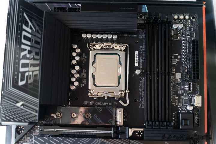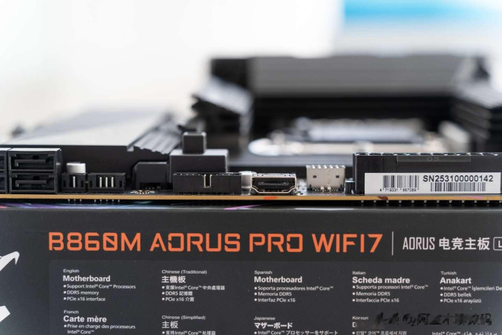 技嘉B860M Pro WIFI 7电竞雕还单独带有一个HDMI接口,可以为处理器带有集成显卡的设备单独进行视频,这个接口的规格为HDMI 1.4,最高支持1920 x 1080@30Hz。 装机实战 下面开始装机实战,我本次装机的配置为: CPU :Intel Ultra 5 230F 主板:技嘉B860M Pro WIFI 7电竞雕 显卡:讯景 7900 XT 海外版 散热:安耐美 LIQMAX IV 360水冷 SSD:三星 970 EVO 2T SSD 内存:金百达 星刃白RGB 32GB(16GB*2) 电源:安耐美 白金竞蝠PK850W黑色 机箱:安耐美 风屿 K1