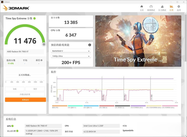 接下来使用3D mark进行跑分测试,最终得分为11476分,可以流畅运行大部分3A大作。